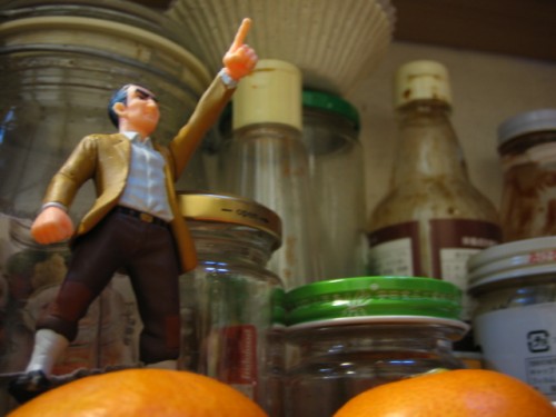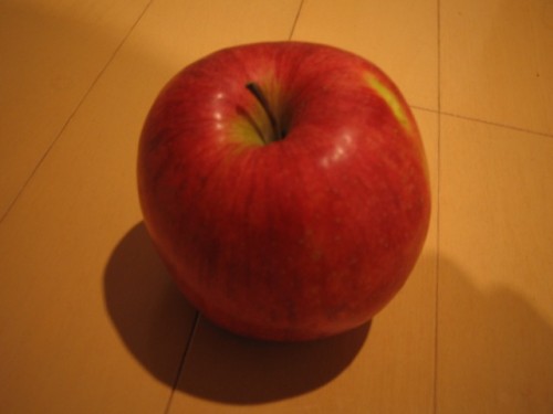 赤いチョッキと赤りんご。